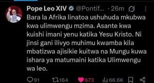 Leo’s message, which was primarily in Kiswahili language, was shared on his social media handles. He further called on all Africans to be “sign of hope in the world.”